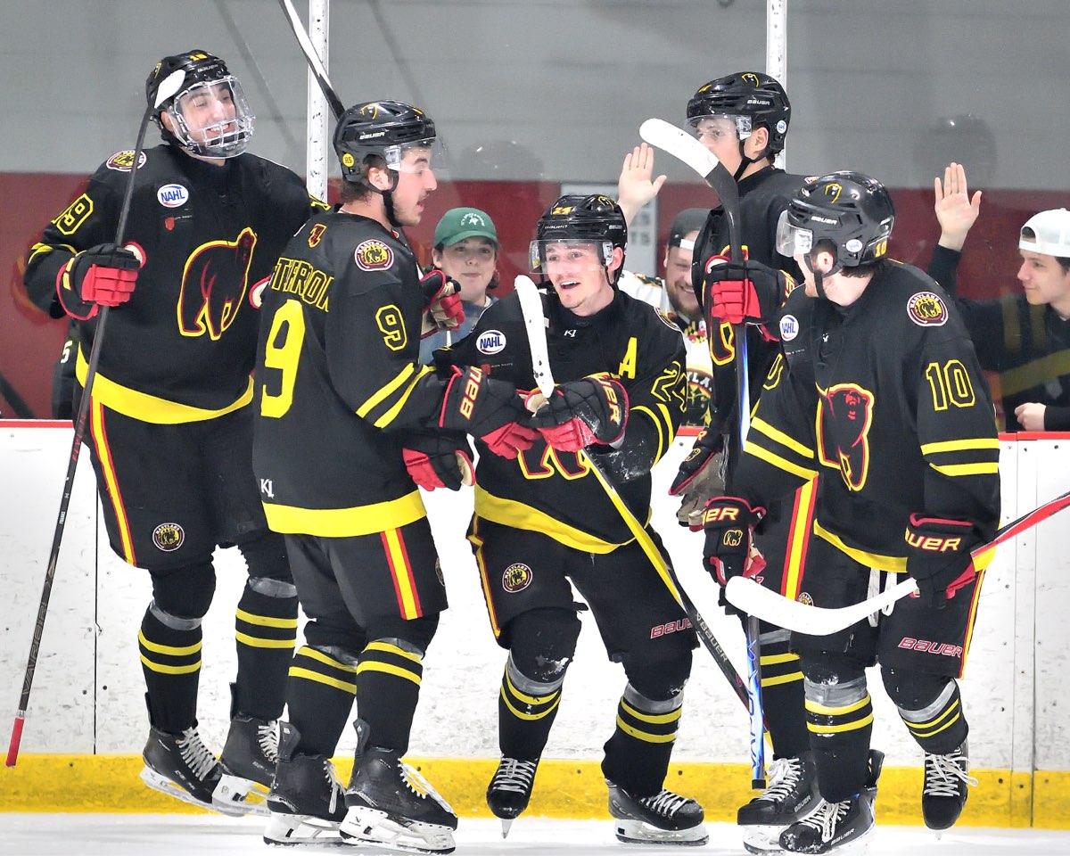 After two big breakaway saves from Black Bears goaltender Ryan Denes to start the first period, forward Tanner Duncan struck on the power play from the slot, beating Danbury goaltender Jon Dukaric under the glove for a 1-0 lead. 16 seconds later, forward Brady Anes picked the top right corner on Dukaric for a 2-0 lead. Defenseman Liam Doherty slung a shot from the near boards top shelf for a 3-0 lead. Maryland continued the scoring in the second period with back-to-back slot goals from forward Ryan Franks to make it 5-0. The Hat Tricks pulled Dukaric, and he was replaced by Luke Brassil. Forward Graiden Insana welcomed Brassil into the game by stuffing a puck five-hole for a 6-0 lead. Danbury got on the board with a backdoor chip shot by defenseman Gavin Burke with 39 seconds to go in the period to make it 6-1.