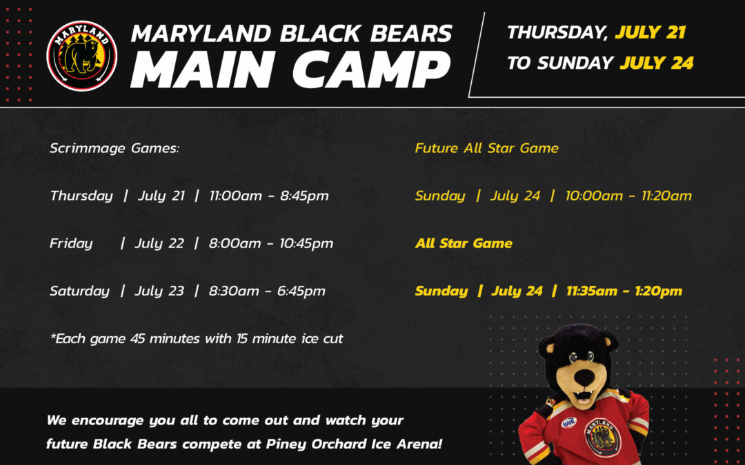 Our Maryland Black Bears pre-season Main Camp is upon us, and here is the scheduled Scrimmage, Future All-Star, and All-Star games. We encourage all our fans to attend, free of charge, to support our soon to be players as they compete for a spot on the roster! ...