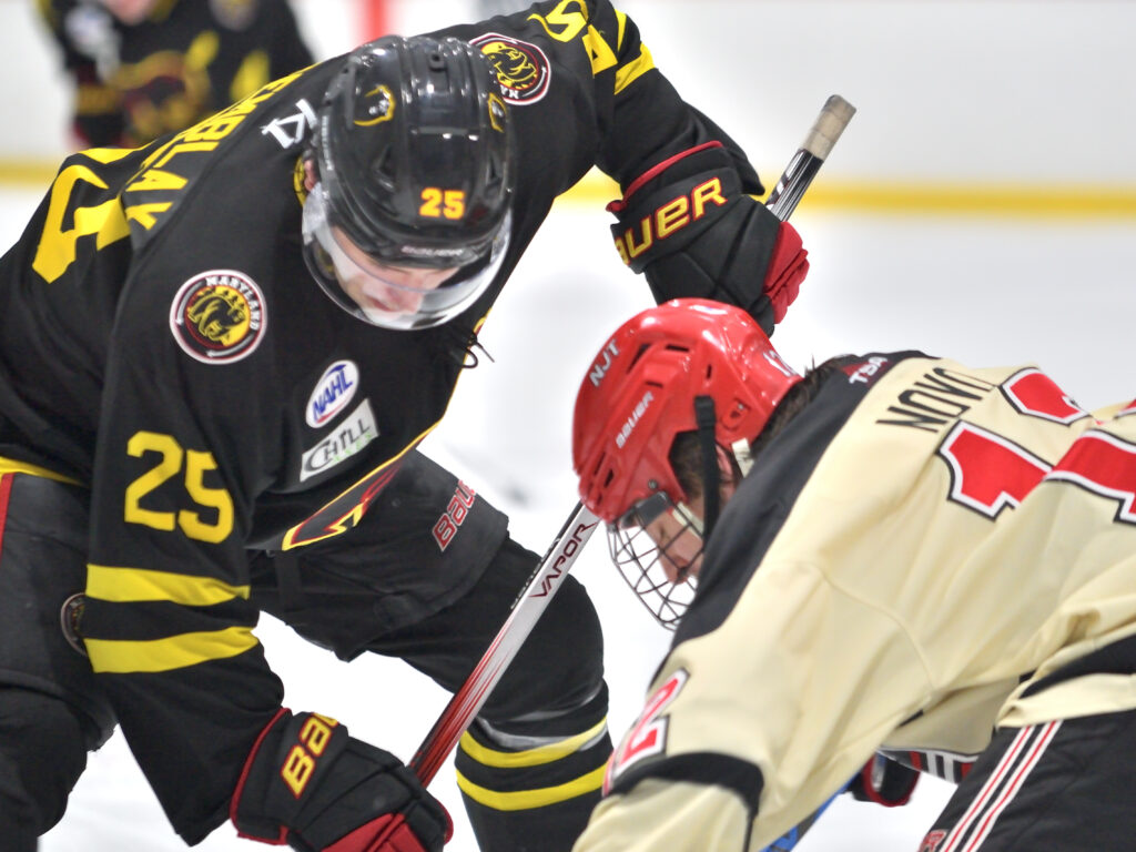SATURDAY MARCH 2nd, 2024: BLACK BEARS (4) at New Jersey (8): The Black Bears got off to an early lead with Matthew Croxall netting his 10th of the season off a rebound from Michael Urgo to make it 1-0 Maryland. On that play, Dimitry Kebreau got credited with an assist to give him his 100th NAHL point. Maryland continued to dominate the offensive play in the first half of the period, keeping New Jersey off the shot counter. However, New Jersey found some cracks, getting an odd-man rush after the media timeout and Logan Renkowksi netted a rebound off the back boards to tie the game up. The lone penalty for Maryland in the frame proved costly, as Reece Brednich scored his eighth of the year with the extra man to make it 2-1. Maryland tried to get the equalizer, but New Jersey kept the threats to the outside to keep the score 2-1 after 20 minutes.