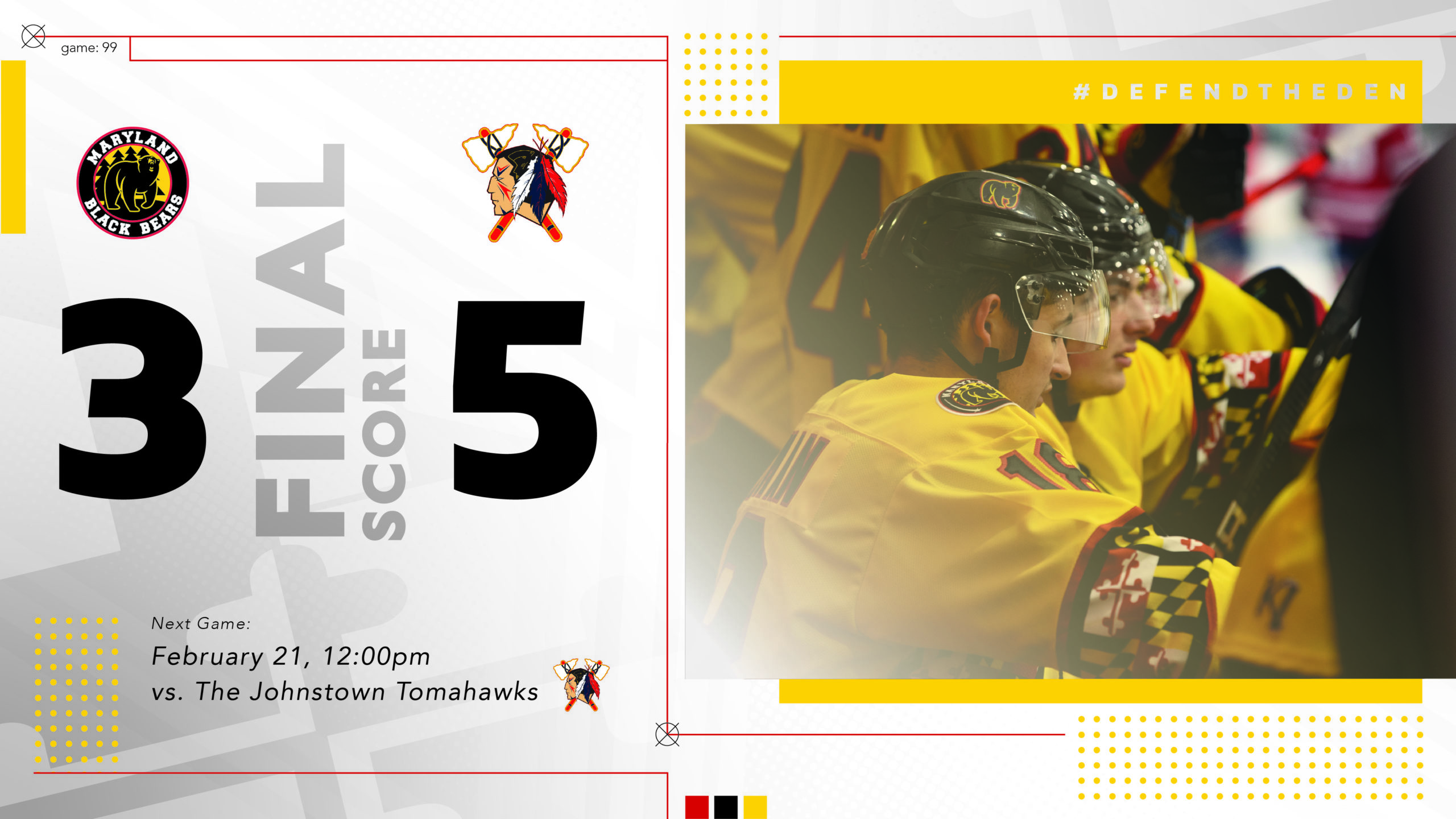 The Maryland Black Bears returned to Piney Orchard Ice Arena, the usual home rink for Maryland, for the first time in 350 days. The Black Bears looked to snap a four game losing streak after being swept by the Maine Nordiques and Johnstown Tomahawks the last two weekends. And in a rematch against the Tomahawks, it was Johnstown beating Maryland in a hard fought contest 5-3.