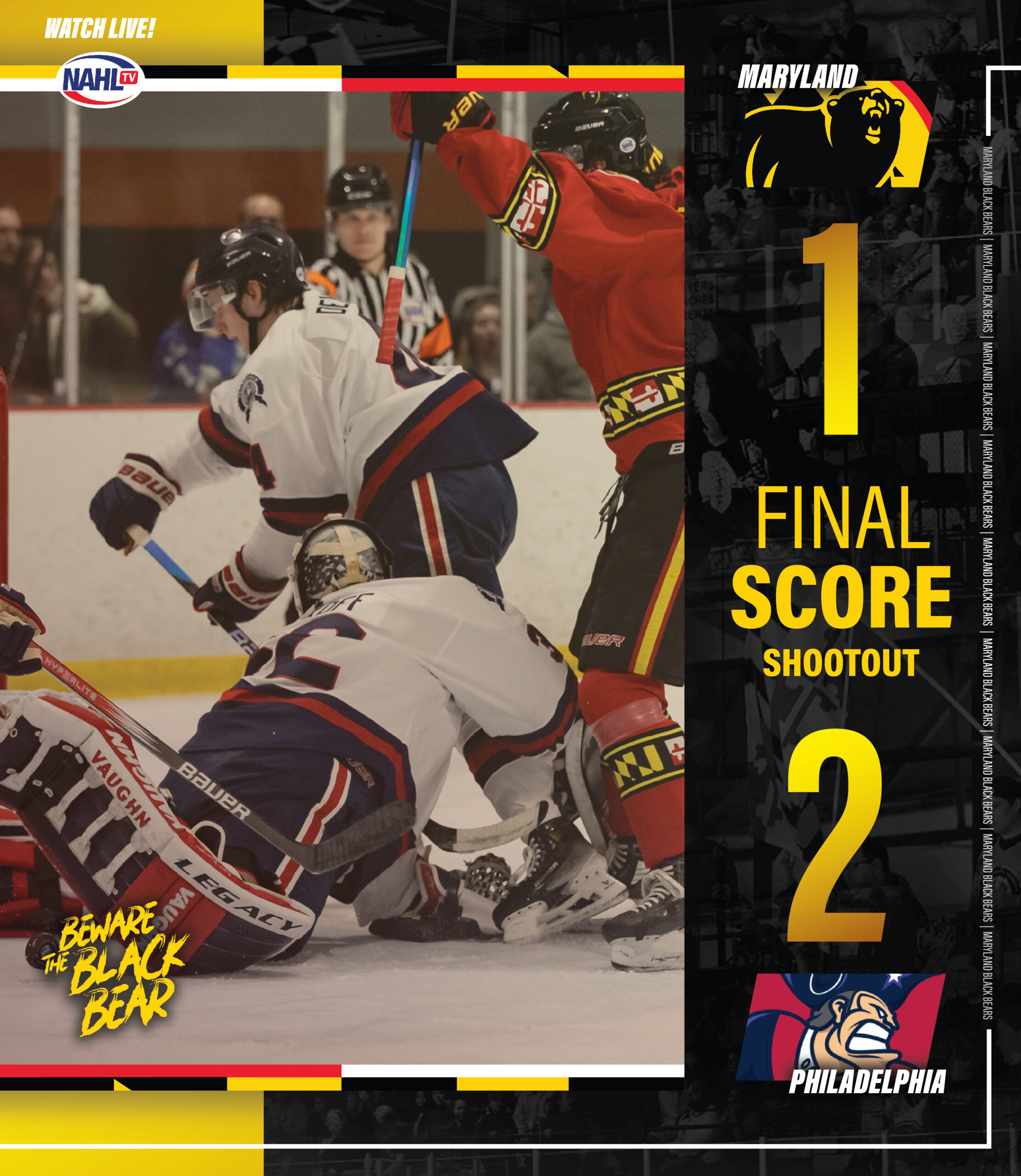 Maryland and Philadelphia rematch on Saturday night at 7:30 p.m. ET at Piney Orchard Ice Arena for the final home game in 2023. All games can be streamed on NAHLTV.