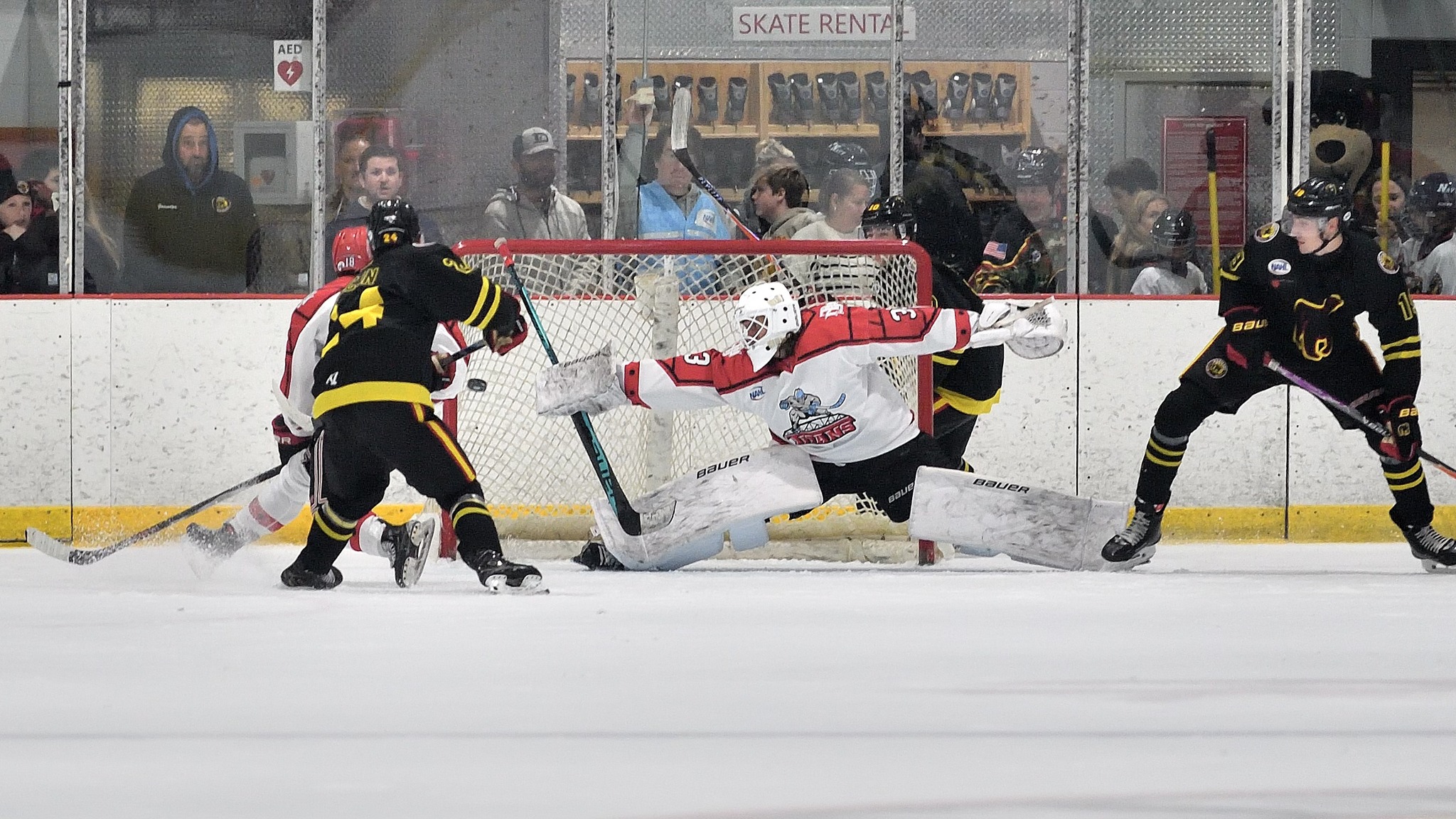 Saturday night got started off on a much higher note with Black Bears forward Tanner Duncan scoring on a rebound to make the score 1-0. However, Rochester would go on to score three straight goals to give the Jr. Americans a 3-1 lead early in the second period. This time, Maryland would execute a great comeback, starting with a backhand goal from the slot by defenseman Dominik Boltnar less than a minute after the Jr. Americans’ second period goal to make it 3-2. Black Bears’ forward Brady Anes tied the game with a rebound goal before forward Josh Frenette gave Maryland a 4-3 lead with a snap shot from the far circle. Defenseman Sam Osei added to the lead with a power play goal to make it 5-3. In the third, the Black Bears’ new addition and former Jr. American, forward Michael Sandruck used a wicked wrist shot from the slot to make it 6-3. Defenseman Victor Mannebratt capped off the scoring with a power play goal to make it 7-3. Goaltender Ryan Denes made 16 saves in the win.